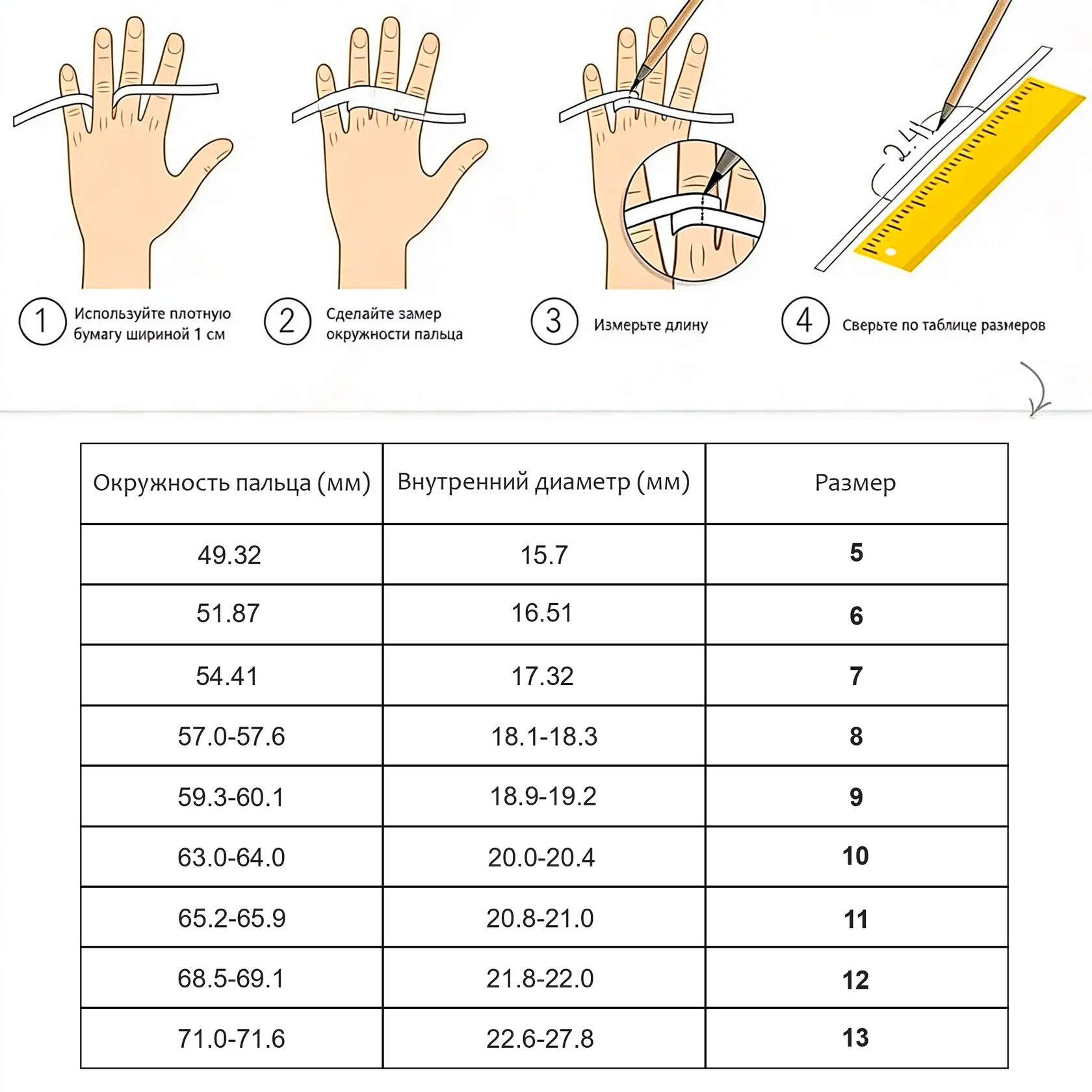 Чтобы кольцо идеально село на палец, важно правильно выполнить измерение.